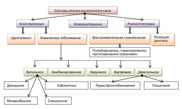 Рис.1. Способы лечения дисколоритов зубов (Флейшер Г. М., 2012).