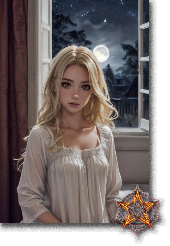 Она тихо присела на край его кровати. Коснулась его волос. Наклонилась к его губам. Они были так близко, что можно было ощутить их теплое дыхание на своих. Не в силах больше сдерживать себя, она впилась в его губы страстным, жадным поцелуем, прильнув к нему всем телом, ощущая каждой клеточкой тепло и мощь его тела. Он вздрогнул, просыпаясь и удивленно смотря на ночную гостью. Парень опустил руки на её плечи, пытаясь оттолкнуть, но она резко отстранилась от него и пригвоздила его руки в постели, проявив недюжую силу, несмотря на видимую хрупкость. Её губы снова коснулись его плеча, горячий язык скользнул к шее.