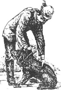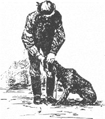 Если же нет стрельбища поблизости, то боязливую собаку нужно приучить следующим образом. Пусть помощник в поле выпустит от 15 до 20 холостых зарядов, находясь шагах в 200—300 от собаки, в то же время собаку нужно, лаская и уговаривая, подвести к нему шагов на 100. На следующий день нужно передать собаку помощнику, и пусть он скроется с ней с поля зрения. Дрессировщик же, отправившись на дрессировальное место, должен начать там стрелять. Помощник пусть приближается теперь с собакой на поводке под ветром к дрессировщику, который все время не перестает стрелять. Собака чует и очень быстро узнает своего хозяина и стремится, конечно, к нему. Дрессировщик манит к себе собаку, не переставая изредка стрелять. Только когда собака не выказывает ни малейшего страха, хотя бы выстрел был произведен в самой близи от нее, мы начинаем ей разъяснять, что выстрел есть приказ принять положение «down».