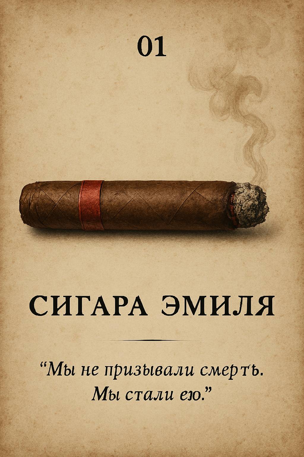 На изящной овальной красно медной пепельнице лежала недокуренная сигара. Толстая, грубой скрутки, стянутая красной лентой. Он подошёл ближе, взял её в руки и окунулся в пряный жгучий дым, коричневый и сладкий, как тростниковый сахар, с привкусом золы и человеческого крика.