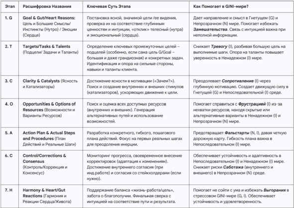 Таблица. Семь Этапов Модели Коучинга GT-COACH и GINI-мир
