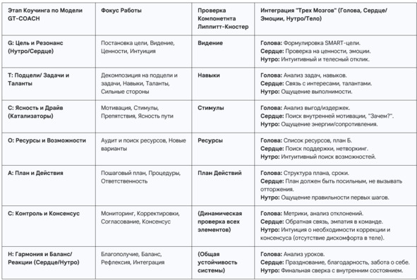 Таблица 1.2. Интеграция Моделей и «Трех Мозгов» в GT-COACH