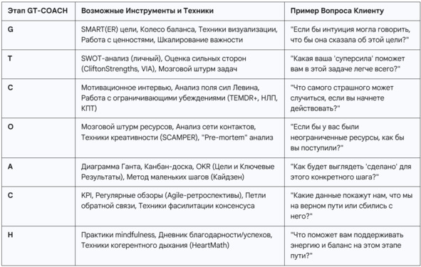 Таблица 2.2. Примеры Инструментов для Каждого Этапа GT-COACH (для Экспертов)