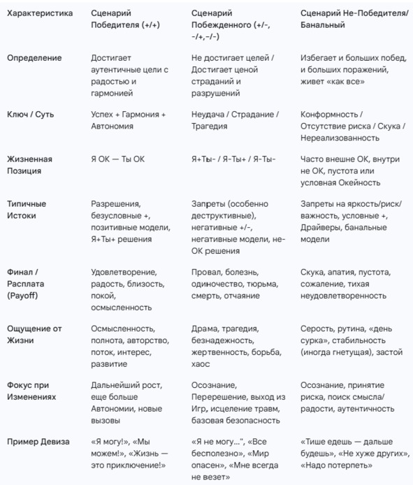 Таблица. Сравнение Типов Жизненных Сценариев