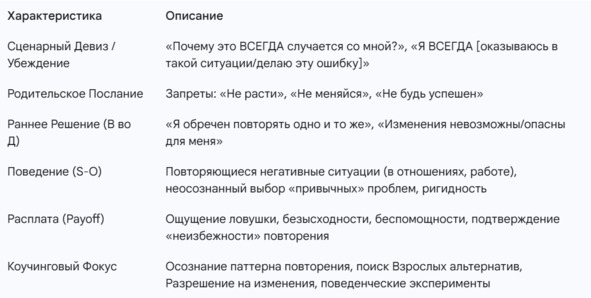 Мы продолжаем наше детальное исследование Сценарных Процессов. Разобравшись с ожиданием будущего («Пока не…» и «После…") и ощущением его невозможности («Никогда»), переходим к паттерну, связанному с фатальной повторяемостью прошлого.