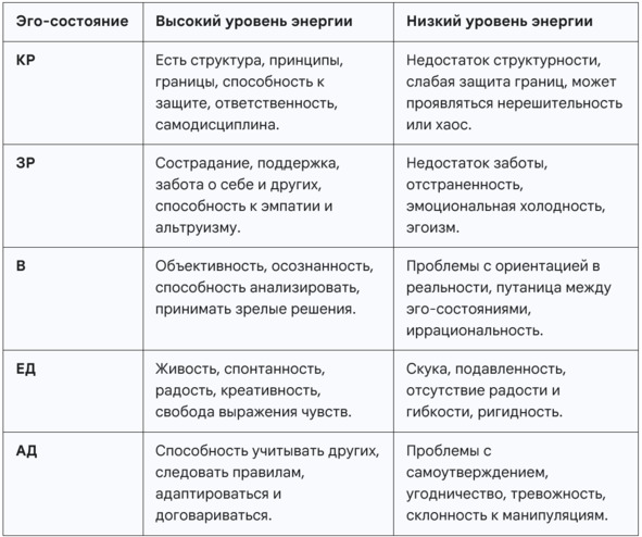 · Осознанность – ключ к управлению: Первый шаг к управлению своим состоянием – это осознать, какое эго-состояние сейчас активно (катектировано). Заметив автоматическую реакцию из Р или Д, мы получаем шанс вмешаться и сознательно перенаправить энергию во Взрослого.