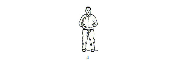 Обратить внимание: голову и шею держать прямо, подбородок слегка опущен вниз. Грудь не выпячивать, живот не поджимать.