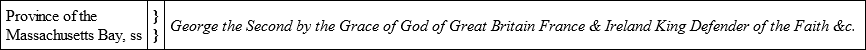 Witness Stephen Sewall Esq. at Boston the Sixth Day of August in the twenty ninth year of our Reign Annoq, Domini 1755