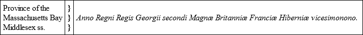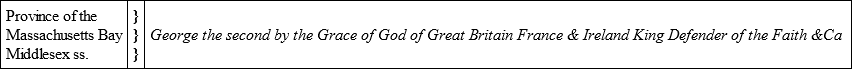 At his Majestys Superiour Court of Judicature Court of Assize and General Goal Delivery began and held at Cambridge within and for the County of Middlesex on the first Tuesday of August Annoque Domini 1755 —