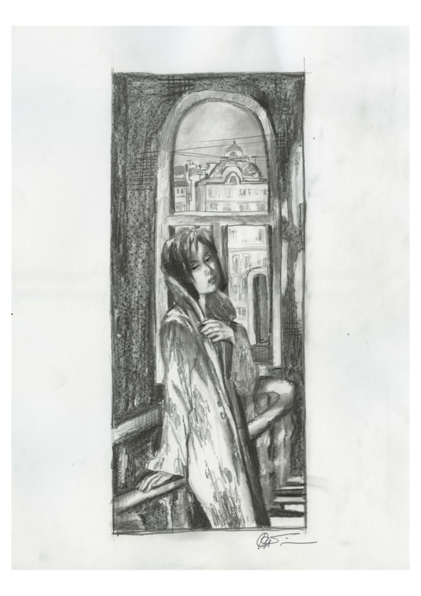 В тот самый момент, когда они уже собирались пройти последний лестничный пролет, глаза Марка пересеклись с глазами прекрасной незнакомки. Её длинные темные волосы, которые спадали с плеч до точеной талии, скрывали мягкие черты лица, тем самым выделяя глаза. Их изумрудный цвет было очень трудно не заметить. Она была закутана в стеганый плащ, который, несмотря на свой явно почтенный возраст, был местами заштопан и основательно вычищен.