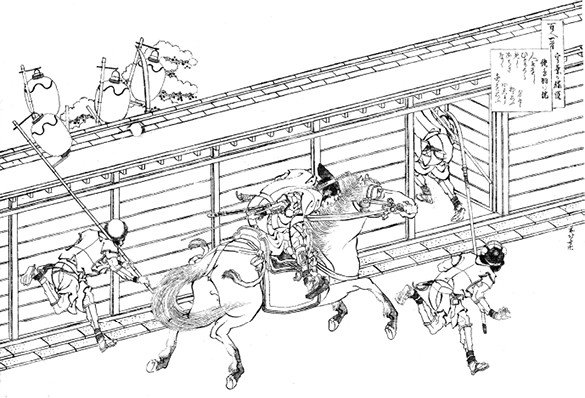 Каноническим примером подобного мщения служит история принца[29] Нагая (684–729), приходившегося по мужской линии внуком сороковому императору Тэмму, а по женской принц был внуком тридцать восьмого императора Тэндзи. Старшей женой принца Нагая была принцесса Киби, дочь сорок третьей императрицы Гэммэй. Достойный Нагая стал жертвой интриг четырех братьев из семейства Фудзивара – Мутимаро, Фусасаки, Маро и Умакая, сестра которых Нагако была одной из жен принца. Братья Фудзивара обвинили принца Нагая в колдовстве, результатом которого стала смерть наследника престола принца Мотои, сына сорок пятого императора Сёму и его старшей жены императрицы Комё, урожденной Фудзивара-но Асукабэ-химэ – якобы Нагая расчищал дорогу к престолу одному из своих сыновей. Когда в марте 729 года воины Фудзивара-но Умакая окружили дворец принца Нагая, его старшая жена Киби и трое их сыновей покончили с собой. Проблема, казалось бы, была решена, но…