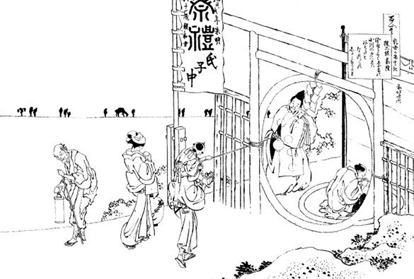 Кацусика Хокусай. Самурай спешит по делу в сопровождении личной охраны и фонарщика