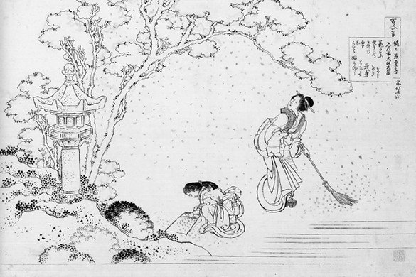 Кацусика Хокусай. Женщины в саду собирают лепестки сакуры