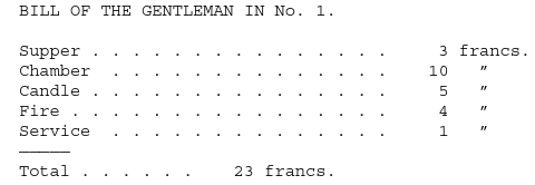“Good gracious, yes, sir, it is twenty-three francs.”