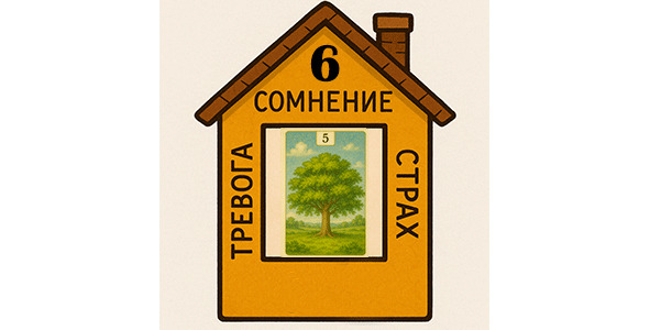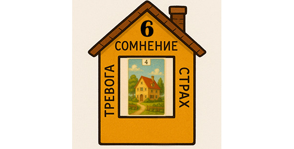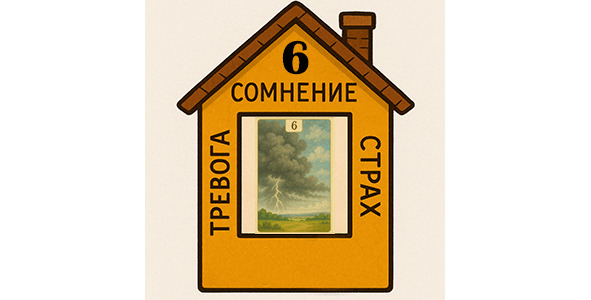 Дом №6 – это зеркало, в котором отражается внутренняя неуверенность. Он не несёт приговора, но заставляет остановиться и взглянуть на свои страхи. Каждая карта, попадая сюда, словно звучит иным голосом – более приглушённым, настороженным, иногда искажённым, как в зыбком отражении воды.