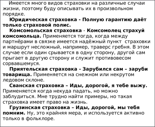 Много снаряжения у нашего брата альпиниста и скалолаза: это крючья, карабины, колоши или скальные туфли, ледоруб, молоток и ещё куча очень нужного и ненужного барахла, но есть один вид снаряжения, без которого не может существовать альпинизм, правильно, это верёвка основная. Верёвка – наш ангел-хранитель, без неё мы беззащитны перед силами природы и нашими желаниями. Альпинист без верёвки что солдат без ружья. Без большинства видов снаряжения можно обойтись, но без верёвки ни шагу в горы.