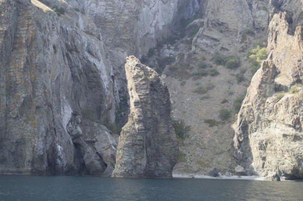 Это было потрясающее зрелище: на всём протяжении ни одной площадки, чтобы вылезти на берег, только отвесные скалы. В одном месте увидел грот, но не стал его осматривать.