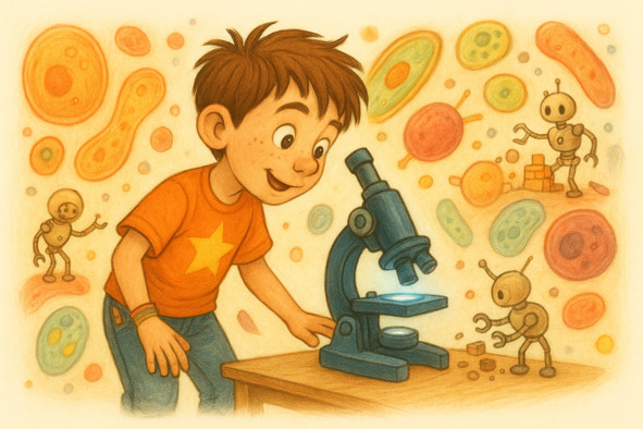Однажды Коля нашёл на чердаке старый микроскоп.