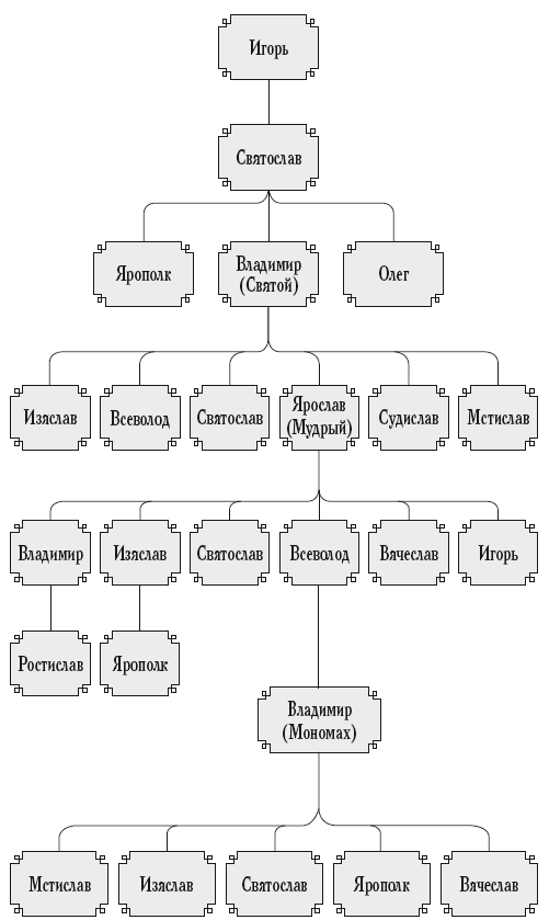 Наглядным примером серьезного подхода к выбору родовых имен у Рюриковичей может послужить киевский князь Владимир Всеволодович (1113–1125), известный сейчас под прозвищем «Мономах». Что он, что его сын – Мстислав Великий – следовали определенному набору принципов, выбирая имена своих детей. Оглядывались они, конечно, на своих достойнейших предков – Владимира Святого, Ярослава Мудрого, Всеволода и Изяслава Ярославичей (отца и дядю Мономаха соответственно). Другие родственники в лице далеких или близких дядьев остались без особого внимания, что как бы намекает – выбор имени происходил не случайно.