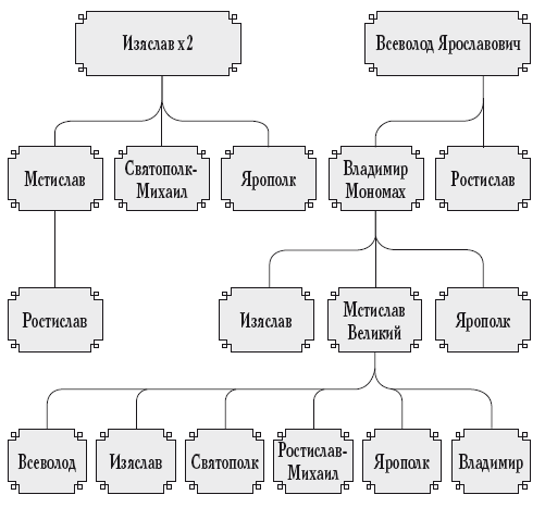 А на примере сыновей уже упомянутого Владимира Мономаха так же просто показать, как князья отходили от традиций двуименности. Имена его старших сыновей отражали повиновение родовой традиции, воспроизводя устойчивую систему, что жила к тому времени уже не один век. Однако Владимир довольно рано потерял первую жену – Гиту Уэссекскую – и вскоре женился вторично. Беда была лишь в том, что все популярные и статусные родовые имена князь уже раздал сыновьям от первого брака. Поэтому с детьми от второго пришлось менять стратегию.