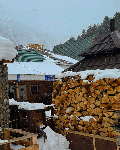 На следующий день еду в село Чегет. Подъёмники закрыты, но это меня не расстраивает. Беру детскую ледянку и наслаждаюсь моментом. Разгоняюсь на склоне, смеюсь, когда вместо крутого поворота влетаю в сугроб. Радоваться простым вещам, как ребёнок.