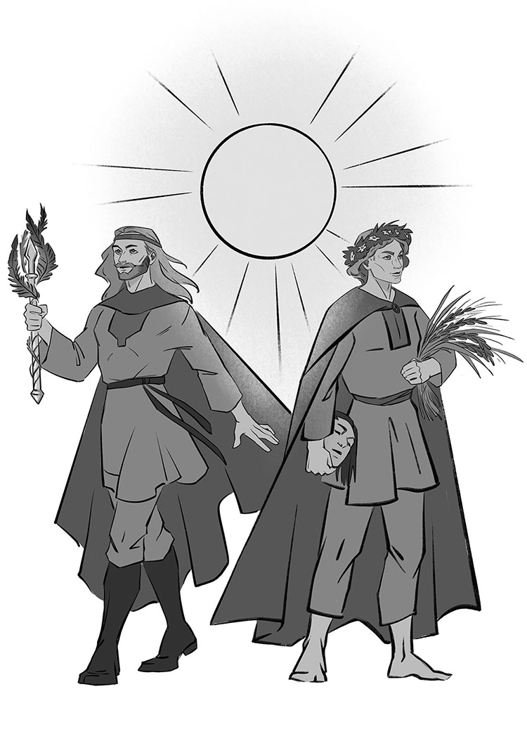 Завершая зиму, Даждьбог отмыкал лето, даря надежду на сытую жизнь. Это очень древний бог с праславянскими корнями, причем некоторые ученые считают, что он еще старше, и выводят его происхождение аж из индийских Вед. Юный и прекрасный, он ехал по небу в колеснице, запряженной грифонами, держа в руке жезл, увенчанный листьями папоротника. Даждьбог – враг любой несправедливости, поэтому вся нечисть и недобрые люди дожидаются, когда он вечером уйдет на отдых, чтобы заняться своими черными делами. В какой-то мере Даждьбог был покровителем добрых начал, не только открывая благоприятное для людей время в году, но и покровительствуя свадьбам. В день бракосочетания он на рассвете встречал жениха.