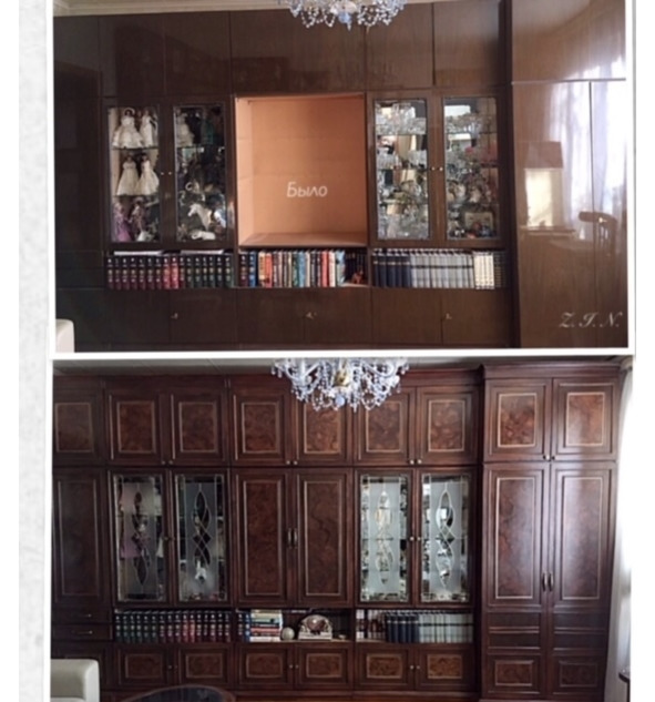 Голубая хрустальная люстра тихонько звякнула, увидев обновленный фасад дверок Стенки. Качнулась в восторге: «Ух, какая же ты стала красивая!»
