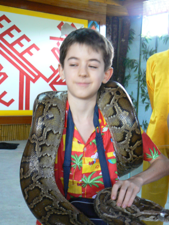 Я посоветовала Кате позвонить милейшему Славе в Суйфеньхэ. Телефон Славы у меня сохранился, но, сколько я не набирала его, в ответ слышалась тарабарщина на китайском. Предложение начиналось все с того же слова «Выпучи» и дальше следовал непроизносимый текст, который, вероятно, если его перевести на русский, звучал бы примерно, как: «Абонент временно недоступен». Находясь почти в полуобморочном состоянии, я продиктовала заковыристый номер Кате. Катя мгновенно соединилась со Славой и минут через семь стало понятно, как ситуация будет развиваться дальше. Катя объяснила, что список, минут через пять, отправят по факсу, а пока посоветовала выйти и осмотреться по сторонам. Мы вышли из дверей гостиницы, но тут же вернулись назад. В дверях на нас набросились различные помогаи, каждый из них, на хорошем русском, предлагал ассортимент развлечений от проезда на велорикше по Яболоу, до… Вариантов было много. Упоминалось даже царствие небесное. Так что пришлось нам сидеть в холле гостиницы и ждать пока ситуация со списками разрешиться. На первом факсе была плохо видна печать и поэтому снова позвонили Славе и попросили отправить ещё один факс. В общем, не прошло и часа, как группу повели завтракать. Завтрак был шикарный. Я надеялась, что и номер, в котором нам предстояло умыться и передохнуть, окажется таким же, но нас ждало разочарование. У меня был не очень большой туристический стаж, но гостиниц я повидала немало. Всякие были, но эта гостиница была чем-то особенным! Когда туристы вошли в номер, им показалось, что они вернулись назад в Харбин. В номере стоял не просто холод-это был лютый мороз. Кое-как разобрались с кондиционером, но, когда решили умыться, оказалось, что ванная и туалет в номере отсутствуют. Искомое нашлось в коридоре. Слава богу, что не в конце коридора, а прямо напротив номера. Но радости от таких удобств было мало. Удобства нужно было открывать ключом, который висел на гвоздике в номере. Пока привели себя в порядок, пока… Кое-кто даже умудрился принять душ и теперь сидел, и дрожал, в холодном номере гостиницы. Когда подошла моя очередь воспользоваться удобствами, с первого этажа гостиницы позвонила милая девушка Катя и предложила туристам с вещами спуститься вниз. Такой суровый подход она объяснила тем, что времени на запланированные экскурсии остаётся мало, да и вокзал, с которого туристы будут уезжать в Санью, на другом конце Пекина, и поэтому, желательно, что бы в ближайшие полчаса туристы покинули негостеприимный номер и спустились вниз с вещами. Я наскоро привела себя в порядок, ребёнок же остался немытый, на него времени не хватило. Максимум что успели сделать-это умыться и почистить зубы. Вскоре вся группа ждала Катю внизу. Если кто-то из туристов надеялся, что его повезут на китайскую стену, то его надежды оказались пустыми, экскурсия по городу называлась обзорной. Быстренько объехали знаменитые места города, побывали на чайной церемонии и двинулись к объекту, являющемуся, на этот момент, гордостью всего Китая. Автобус двигался в направлении олимпийского парка, и стадиона, в простонародье именуемом гнездом. Как и следовало ожидать, внутрь стадиона группу не пустили, отговорившись тем, что экскурсия внутрь займёт много времени, так как при входе в гнездо, очень серьёзный контроль и досмотр вещей. Везде, куда не глянь, стоял