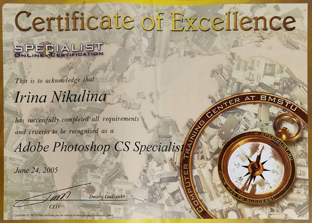 Рис. 2. Сертификат специалиста Никулина Ирина