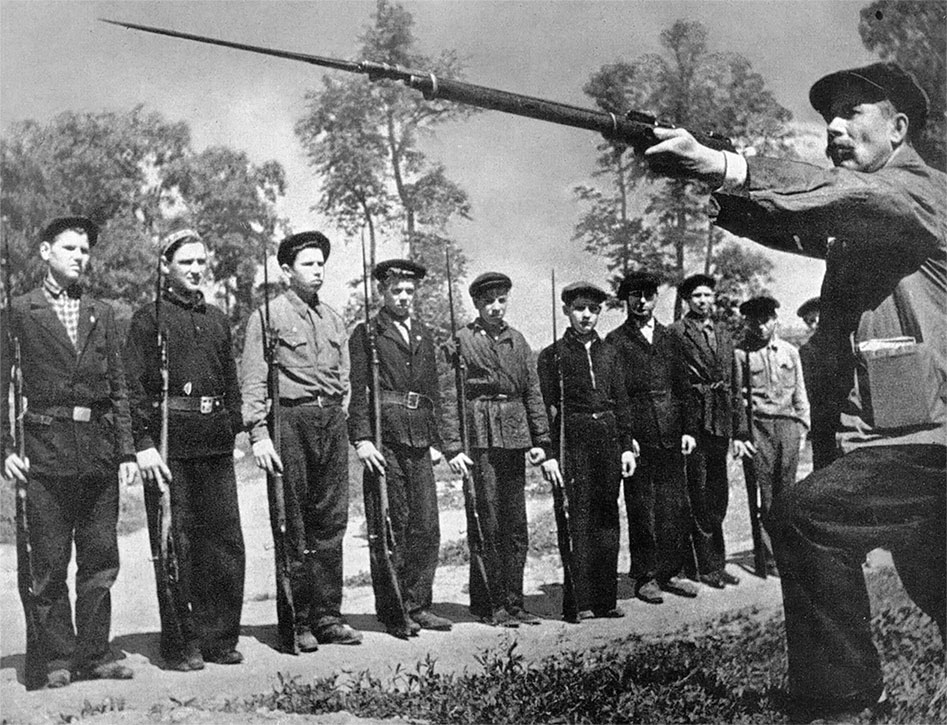 Ленинградские ополченцы проходят психологическую подготовку к грядущим боям – обучение штыковому бою.
