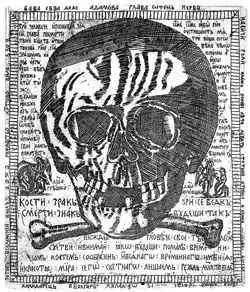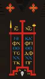 Изображение черепа с двумя лежащими на нем накрест костями (или без них) – довольно древний символ. Место распятия Христа Голгофа (по древнееврейски Gilgeiles Golal, букв. «место черепа» или же по русски «лобное место») подчас изображалось и как могила Адама. В основании креста или у ног распятого часто рисовался череп (или весь скелет), напоминая о легенде, по которой крест возник из древесины райского дерева подразумевалось, что изображённый череп принадлежит Адаму. На мозаике византийской церкви II в. в Дафни (близ Афин) изображено, как кровь распятого проливается на череп Адама, который от этого пробуждается к жизни и молитвенно поднимает руки или собирает кровь христову в сосуд. В старину на Руси в передних рядах сражений выхолили монахи (напр. легендарный Пересвет) с нашитыми на груди изображениями черепа, и сражались безоружными, жертовуя собой. В дальнейшем этот знак нашивали на свои кивера немецкие гусары, носили нашивки с ее изображением и офицеры Брусиловской армии в годы Первой мировой войны и воины корниловцы. И теперь как символ жертвенности Адамова голова нашивается на параманы и аналавы (см.) монахов-схимников; как символ готовности пострадать за правое дело.