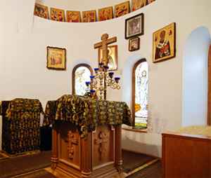 Под престолом или в антиминсе полагается часть св. мощей в воспоминание древнехристианского обычая совершать литургию на гробницах мучеников в катакомбных одеждах – срачицах, индитиях, илитонах. Алтари устраиваются ближе к апсиде, часто на возвышении, к которому из наоса (см.) ведут одна или несколько ступеней. В алтаре находится также обыкновенно жертвенник или особый стол для совершения проскомидии. В каждом храме может быть несколько алтарей и престолов. На одном престоле дозволяется в день служить литургию только один раз.