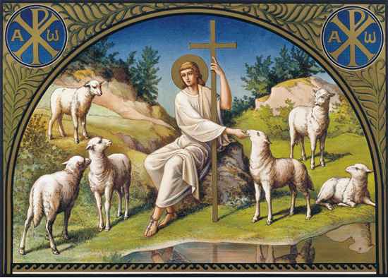 В самых ранних изображениях апостолов рисовали в виде 12 овец, стоящих по обе стороны от Христа «пастуха», или агнца Божьего.