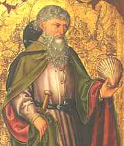 Иаков Старший(Зеведеев) присутствовал при самых ответственных минутах деятельности И. Христа, даже при воскрешении дочери Иаира(Мк. 5, 37 42; Лк. 8, 51 55)изображается с саблей, которой он был обезглавлен в память о том, что он был первым из казненных апостолов. Его считают покровителем паломников в Святую Землю, отчего в его изображении часто присутствуют посох, дорожная бутыль и створчатая раковина, которые в те времена часто использовались в роли ложек и небесный покровитель Испании. Согласно преданию, после мученической кончины апостола в 44 году на Святой земле, его останки были положены в лодку и пущены по волнам Средиземного моря. Чудесным образом эта лодка приплыла в Испанию и была выброшена на берег в устье реки Улья. В 813 году, как гласит церковное предание, живший в этой местности монах отшельник Пелайо, следуя за некоей путеводной звездой, обнаружил этот ковчег, с мощами, которые оставались нетленными. Позже там появится город Сантьяго де Компостела (от лат. Campus Stellae– «Место, обозначенное звездой»).