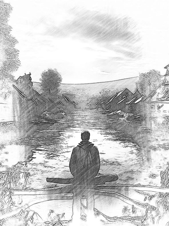 Солнца яркий лучик пробивает тучи,Греет он травинку нежностью своей.Ветерок спустился с оголённой кручи,Капельки сбивает с паутин – сетей.Капли собирает ручеёк журчащийИ несёт сквозь камни старые к реке.В камыше таится окунь полуспящий.Лошади резвятся где-то вдалеке.Вдоль реки деревня. Ветхие избушкиВыстроились дружно (все наперекос).По тропе тихонько топает старушка,Куль несёт с обедом деду на покос.Я иду дорогой издавна знакомой,А гляжу на это, будто мне впервой.Памятью своею я теперь ведомый.Раньше был своим здесь, а сейчас чужой.Старый мост над речкой из досок скрипучих.Я с моста, как в детстве, на себя смотрю…Солнца яркий лучик пробивает тучи.Отчего не греет душу он мою?