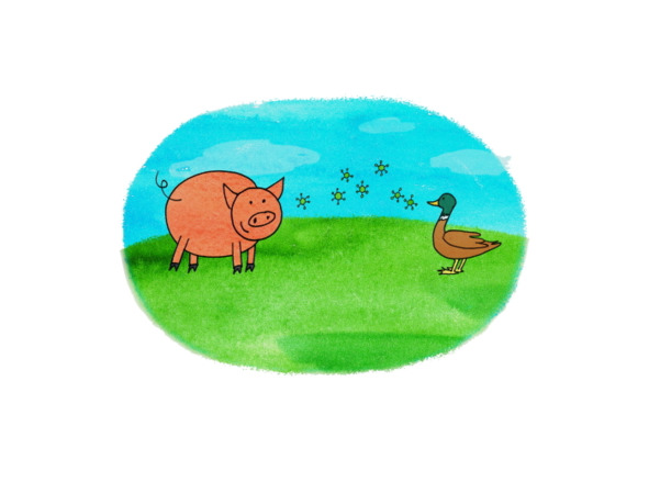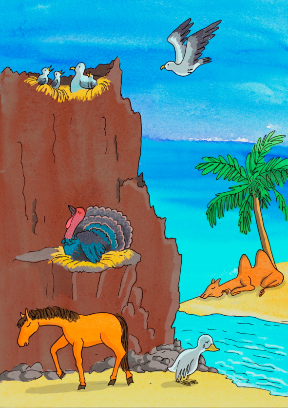 Они полетели на север и юг,И вот заразился и гусь, и индюк.В пустыне верблюды уже заболели,И лошади ходят совсем еле-еле.А в море рыдает китиха-мамаша,Китенок свалился и болен папаша.На берег морской чайки быстро садятся,Там плач раздается, где птицы гнездятся.То вирус от уток к ним быстро проник,И горло хрипит, и животик болит.