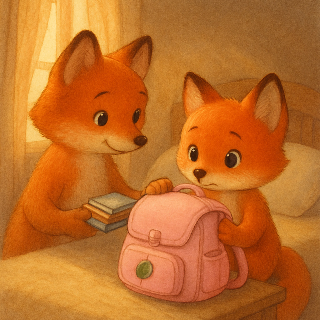 На кровати лисички Алисии лежал нежно-розовый портфель – совсем новенький, с яркой застёжкой в форме листика и кармашками, которые пахли ещё пустотой и приключением. Он чуть блестел в лучах солнца, будто был волшебным.