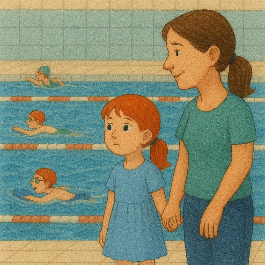 – Хочешь договориться с тренером, чтобы тебя только записали, но не заставляли? – с улыбкой спросила она. – Так не работает. Но я обещаю: ты будешь учиться плавать в своём темпе. Никто не будет тебя бросать в воду. Сегодня мы просто поговорим с тренером и посмотрим бассейн. Договорились?