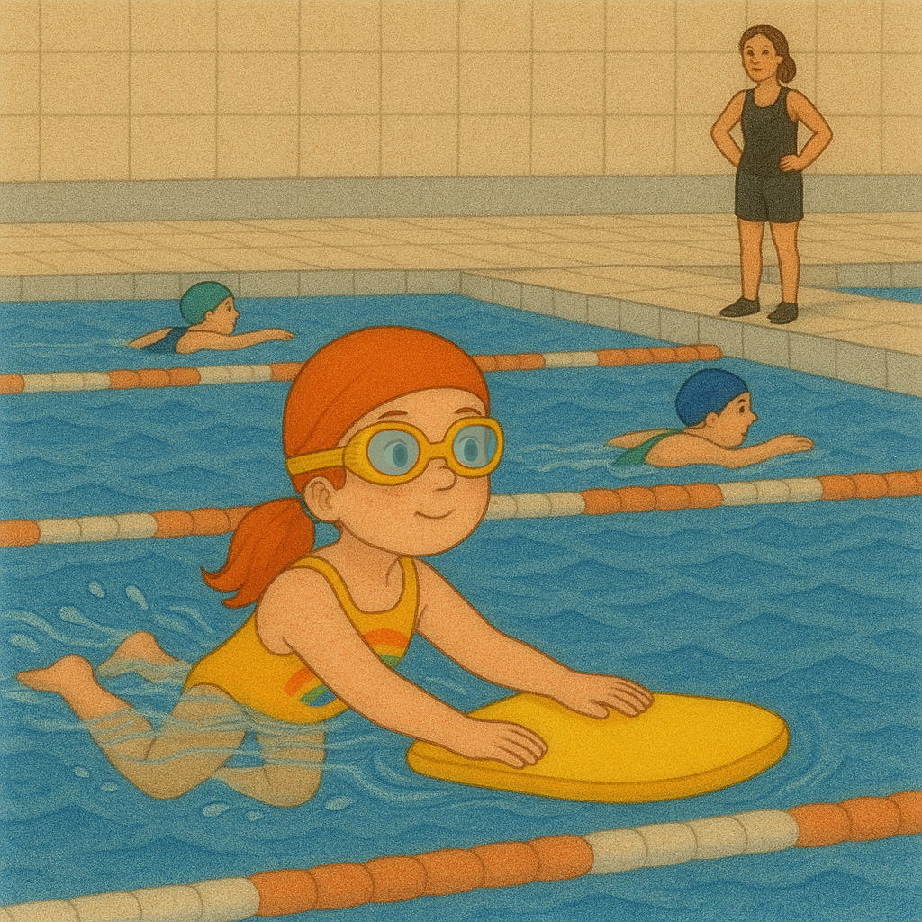 Сердце постукивало, будто в животе у неё поселился барабанщик. Завтра – первое занятие. И не просто посмотреть, а плавать по-настоящему. Как другие дети. Как настоящие спортсмены. Как те, кто умеет держаться на воде, а не тонет, как ложка в супе.