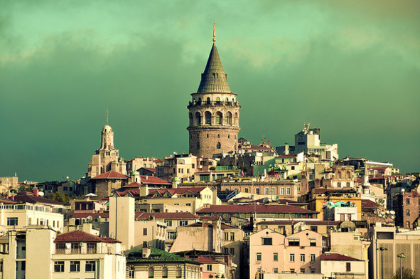 А.VII.1 Башня Галата в Константинополе, памятник Богу-Отцу и Богу-Сыну. Вид на север утром со стороны центра Константинополя через залив Золотой Рог. Упоминается в Библии, как Вавилонская Башня.