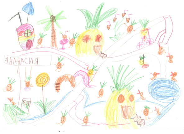 – Понимаешь, ананасы есть нельзя, они живые. Все они живут в стране, которая называется Ананасия. Ананасики, созревшие под лучами яркого солнышка, зовутся нясики. Они очень милые и добрые. Есть ананасики, которых разбудили палочками-будилочками раньше времени, когда они ещё спали в красивых розовых цветах, – это ботвуны, они ужасно капризные и постоянно требуют, чтобы их нежили и баловали. Есть ананасики без ботвы, они зовутся уфиками, а ананасы с коротенькой ботвой называются неллерами. В Ананасии ананасы живут повсюду: в воде, они называются сясиками, в горах, они называются масиками, в небе, их зовут клясиками…