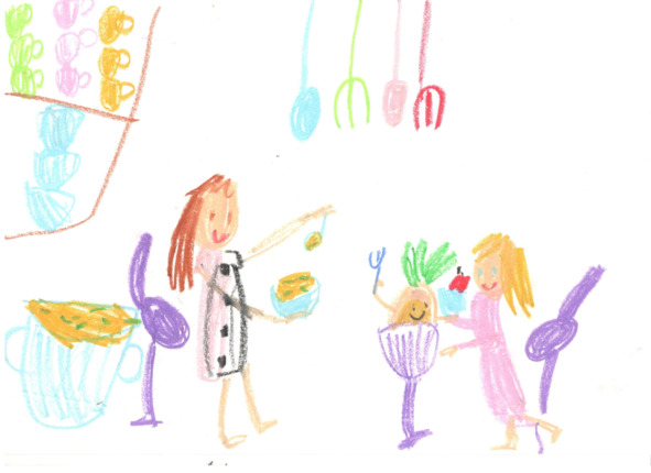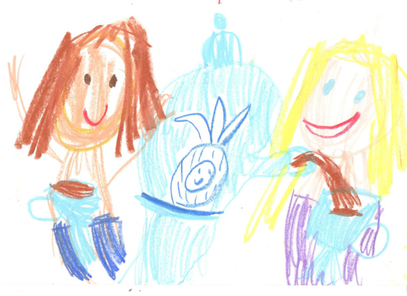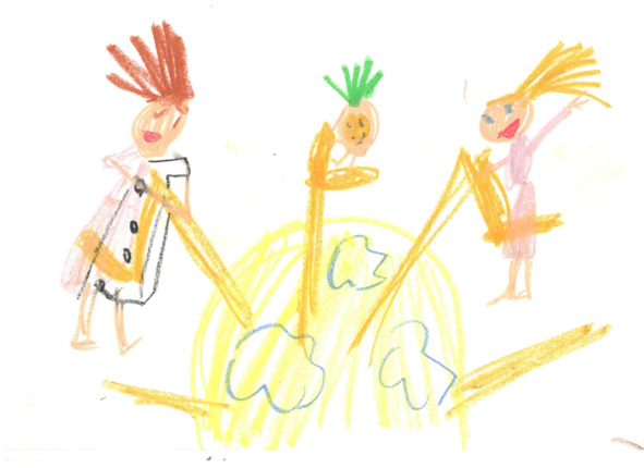 После этого кашу выбросили, а Света, Катя и Энанас пошли на прогулку.