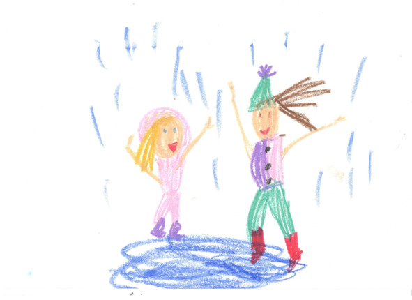 – Наверное, дождь очень страшный с большой пастью, лапами как у кенгуру и тремя хвостами! – подумал малыш.