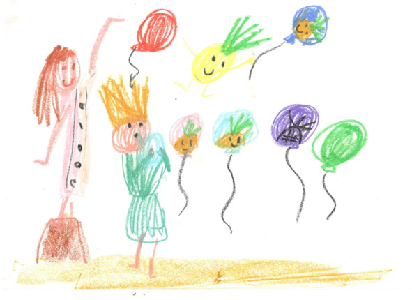 – Красота какая! – радостно подпрыгнула Света. Энанас весело хлопал в ладоши. Особенно его радовал ярко-жёлтый с блёстками шар в форме ананасика с зелёной макушечкой. Ветер усиливался, шарики взволнованно трепетали. И тут красивый жёлтый шар-ананас неуверенно покачнулся, оторвался от забора и полетел.