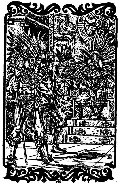 Я отправился туда в паланкине, хотя стрела из моего лука долетела бы туда от двери до двери. Перед порталом дворца, похожим на все другие, что я видел, только более декоративным, меня встретили воины и ярко одетые слуги, которые провели меня через внутренний дворик, приготовленный, как я заметил, для какой-то церемонии, в небольшой зал. Здесь, когда мои глаза привыкли к полутьме, я увидел человека лет шестидесяти и позади него – двух воинов. Я сразу заметил, что все, что окружало этого человека, отличалось скромностью и простотой: зал, в котором почти ничего не было, кроме четырех побеленных стен и каменного пола, стул, на котором он сидел, и даже его одеяние. Здесь не было ни золота, ни серебра, ни расшитых тканей, ни жемчужин или других богатых и драгоценных вещей, которые любят эти люди; и вся обстановка скорее напоминала ту, что приличествует воину. Воином он и был, во всяком случае на вид, – грубоватый и широкоплечий, со шрамом на простом лице, на котором светились глаза, приветливые и проницательные.