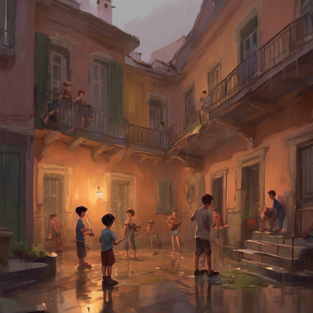 СГ: надо бежать, бежать, бежать прочь из душного двора. Но и на улице не лучше: Сема маленький, несуразный, у Семы скрипочка, у Семы мама некультурная.