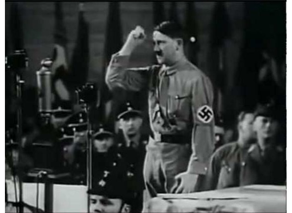 В зале было полно штурмовиков СА. Вилли узнал их руководителя – Эрнста Рема. У него был суровый и торжественный вид. По всему залу были расставлены динамики, из которых доносились бодрые марши. Внезапно музыка прекратилась, свет потух, и через весь зал протянулся белый луч мощного прожектора, который осветил фигуру идущего к трибуне невысокого человека. Он шел твердым солдатским шагом, и в тишине зала отчетливо слышался стук каблуков его сапог. Вилли тогда неожиданно ощутил в своей груди холодок и теснение, а также пробежавшие по обеим рукам до кончиков пальцев мурашки. Просто удивительно, какое воздействие мог оказывать на людей этот человек. Зал взорвался аплодисментами и приветствиями.