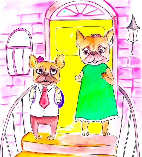 Мама подозвала Фриду, чтобы та съела восхитительную косточку на завтрак. После завтрака Фрида собиралась в школу. Она сложила книги и карандаши в рюкзак и прошла на кухню за пакетом с её любимыми крекерами, которые она брала на обед. Рюкзак с обедом был собран, и мама вышла вместе с Фридой на крыльцо. Прежде чем поцеловать дочь на прощание, мама сказала: