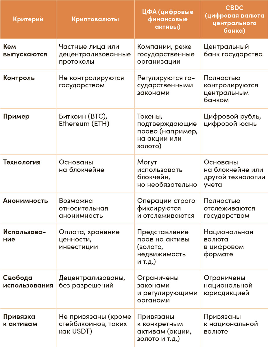 В мире цифровых активов можно выделить три категории: криптовалюты, цифровые финансовые активы (ЦФА) и цифровые валюты центральных банков (Central bank digital currency, CBDC). На первый взгляд они могут показаться похожими, а многие и вовсе не видят разницы между ними. Однако их назначение, способы управления и области применения значительно отличаются.