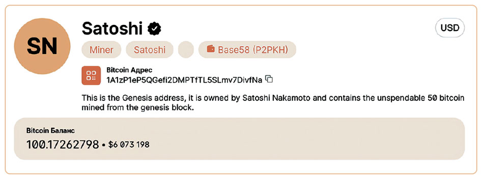 Вопрос о личности создателя биткоина по-прежнему самый обсуждаемый не только в криптосообществе, но и за его пределами. В том числе из-за количества монет, которые могут ему принадлежать. Считается, что в кошельках (их также называют адресами, поскольку они состоят из уникального набора символов, по которому можно отправить средства, словно по почтовому адресу), предположительно связанных с Сатоши, уже много лет без движения лежит больше 1 млн BTC. Один из самых известных – адрес, который получил награду за добычу первого блока (генезис-блока) в блокчейне биткоина.